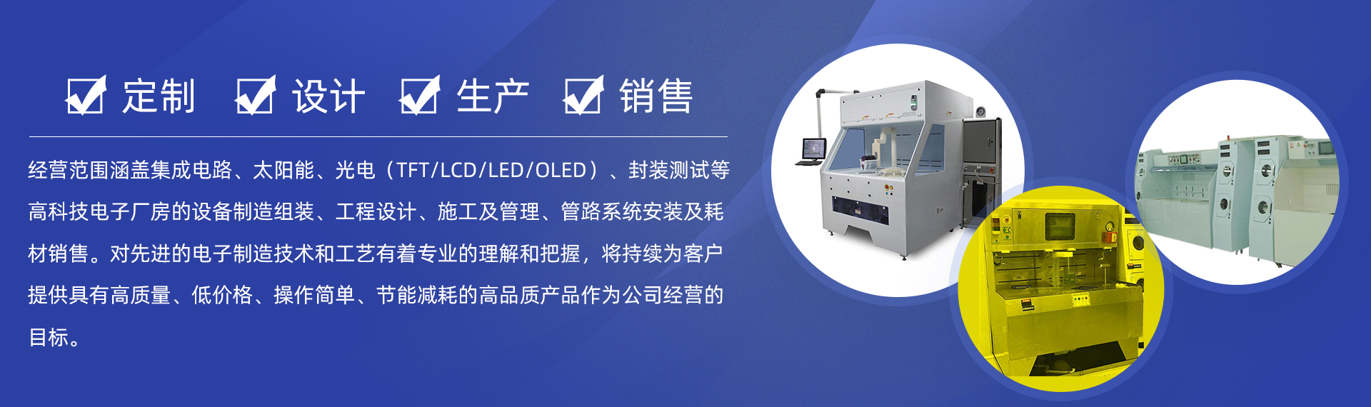 業務覆蓋范圍全面,支持清洗、甩干、焊接、蝕刻、封裝化鍍、供液系統等設備研發與生產。其中從接單-設計-組裝-生產-測試-裝機-售后服務-PM完全由力芯科技自主制作。